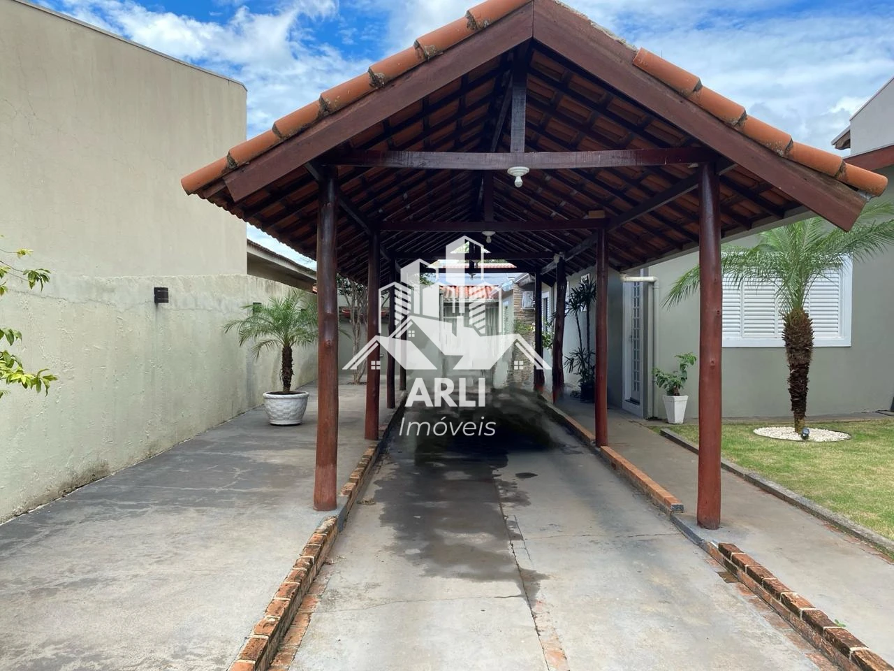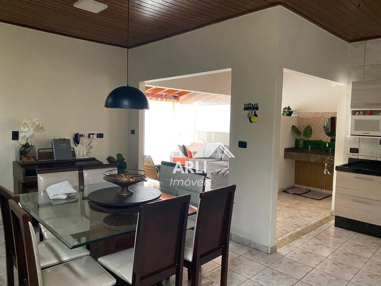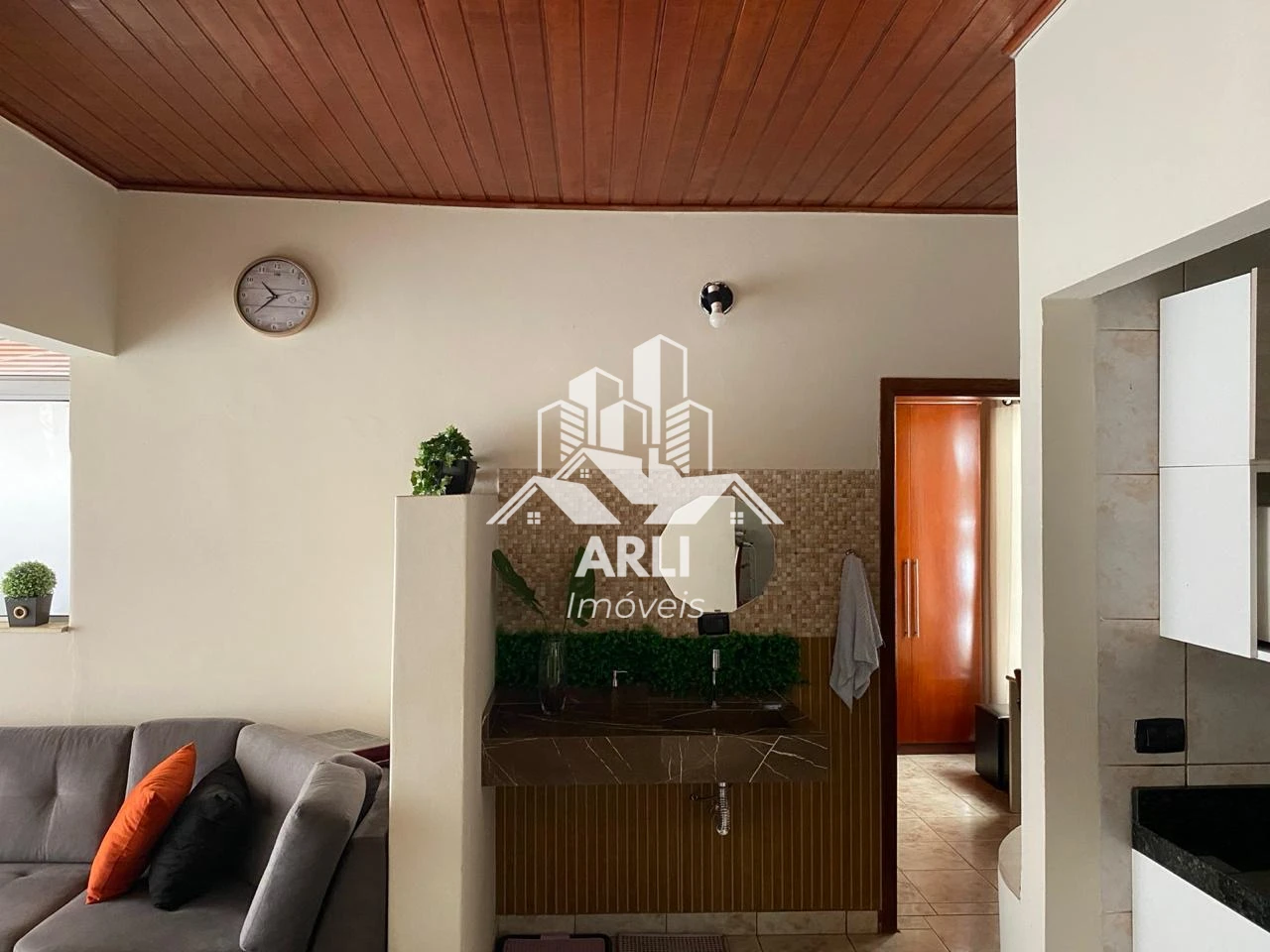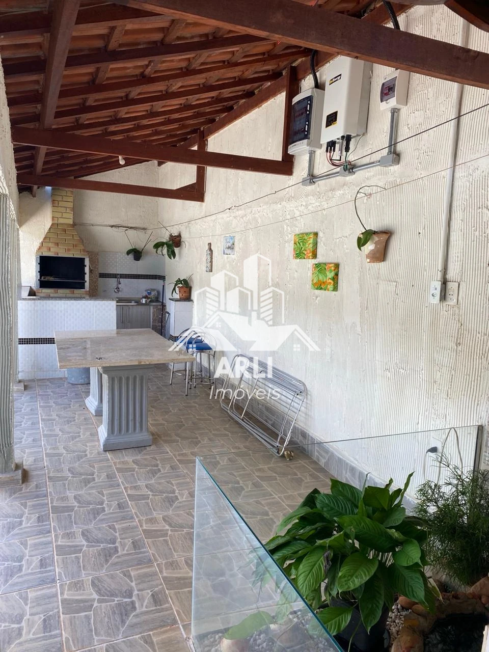 Localizada no centro da cidade, em terreno de 400 m² e área construída de 250 m², a casa oferece contato com a natureza, com área verde, árvores frutíferas, cascata com peixes ornamentais e espaços para redes de descanso.